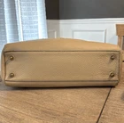 This Coach Hamptons carryall is absolutely stunning! The cream pebbled leather looks luxurious, and the gold hardware adds a touch of elegance. The belted design and tassel detail give it a classic yet stylish vibe. Roomy enough for daily essentials, and the heavy-duty construction feels durable. The exterior is flawless—only a minor interior stain, barely noticeable. A fantastic pre-owned find at a fraction of the retail price!