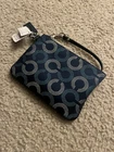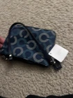 The Coach Handbag Dot Blue is a small satchel/top handle bag with a polka dot pattern and a vibrant blue exterior. It features a zip closure, silver hardware, and a satin lining in blue. The bag has a leather handle/strap in blue and is made from satin material, making it a stylish accessory for women. The Coach Ashley product line adds a touch of luxury to this fashionable piece.