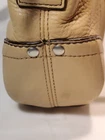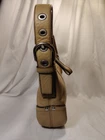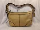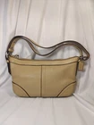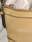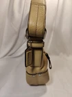 This stylish Coach Handbag Purse NO. J1D-9813 is made of high-quality leather and has a beautiful tan color. It features a shoulder bag style and has dimensions of 11" width, 8" height, and 3" depth. The bag is perfect for women who want to carry their essentials with them in a fashionable way. The bag is pre-owned and has some wear and tear, but it is still in great condition. It is perfect for those who want to add a touch of luxury to their wardrobe without breaking the bank. This bag is a must-have for any fashion-conscious woman who wants to make a statement with her accessories.