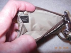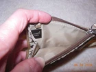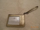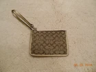 This is a used Coach handb ag Signature ID Skinny in a Khaki material with metallic gold trim and a silver hook . (See photos.) : ID Skinny has some wear, mainly on the outside around the edges. Approximate measurements are: at the bottom - 4 1/2 inches long by 3 inches tall. This could be used as a small wallet, credit card holder or coin purse. This item is very rare! This comes from a smoke free and pet free home. Check out my other Coach auctions. Buyer pays for shipping in U.S. Buyer pays for shipping in the U.S. Check out my other auctions . Buyer pays for shipping in U.S. via USPS. I can not be responsible for any items damaged or lost by the USPS. All payments must be made in U.S. Dollars via Paypal. Must receive payment within 10 days of close of auction or I may relist item. IMPORTANT: Bidders with either negative or private feedback ratings may be denied final sale, regardless of bid amount, at the seller's discretion. FEEDBACK LEFT & APPRECIATED IN RETURN