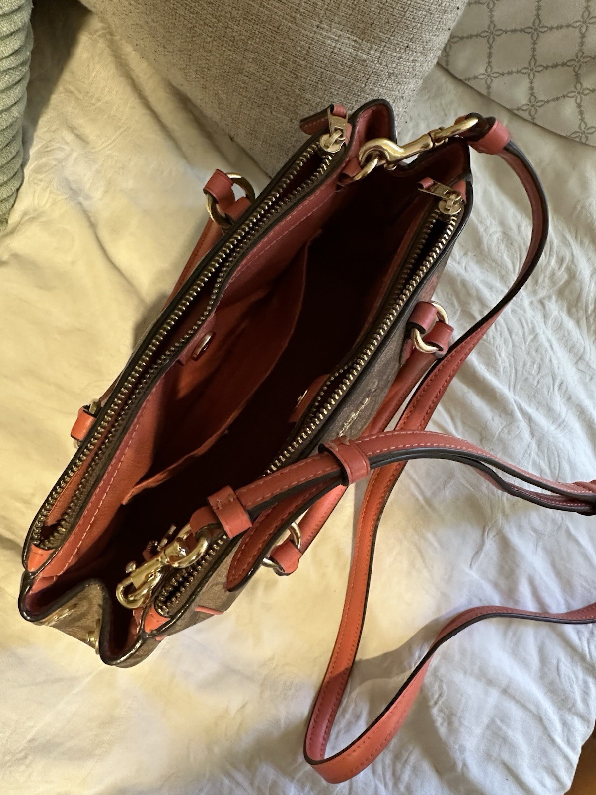 Coach small but spacious, has many pockets Excellent condition See pictures for size reference
