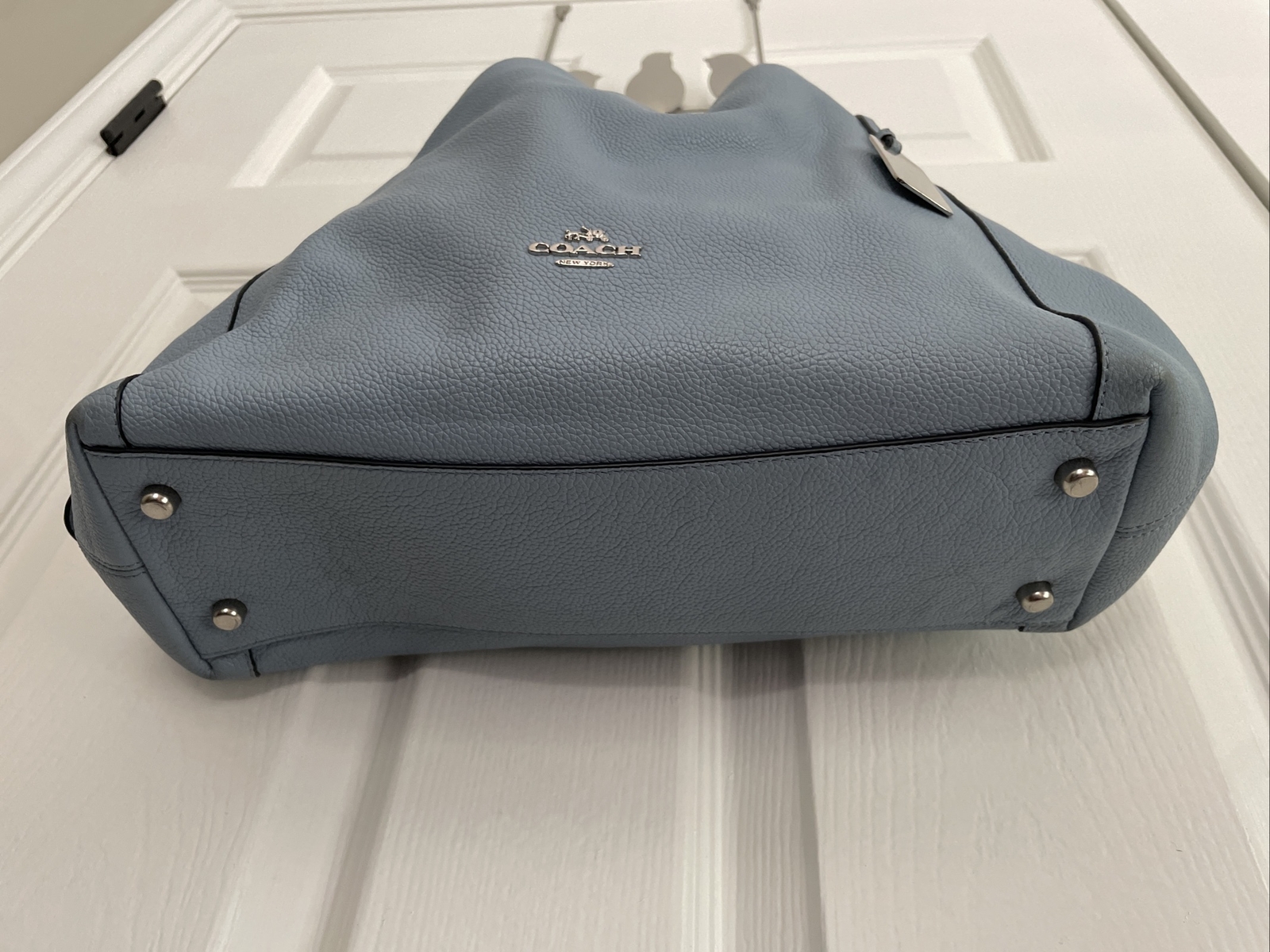 Preowned but in excellent condition. Always stored in dust bag, nonsmoking home. No interior stains. Middle and side zip pockets. Some scoffs on bottom corners. See pictures and review carefully. Dust bag included.
