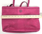 Welcome, Item: Coach Perforated Tote Bag Hot Pink A1382-F21941 Condition: Pre-owned. Signs of previous use present. Please review provided high resolution photos. Thank you for stopping by!