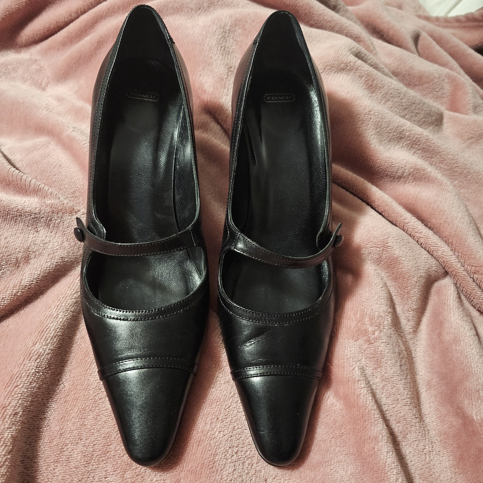 Absolutely stunning black Coach heels. Size is 8 B. See photos for light scuffing, but overall pretty light wear. Quick shipper! Style: Juliett J624