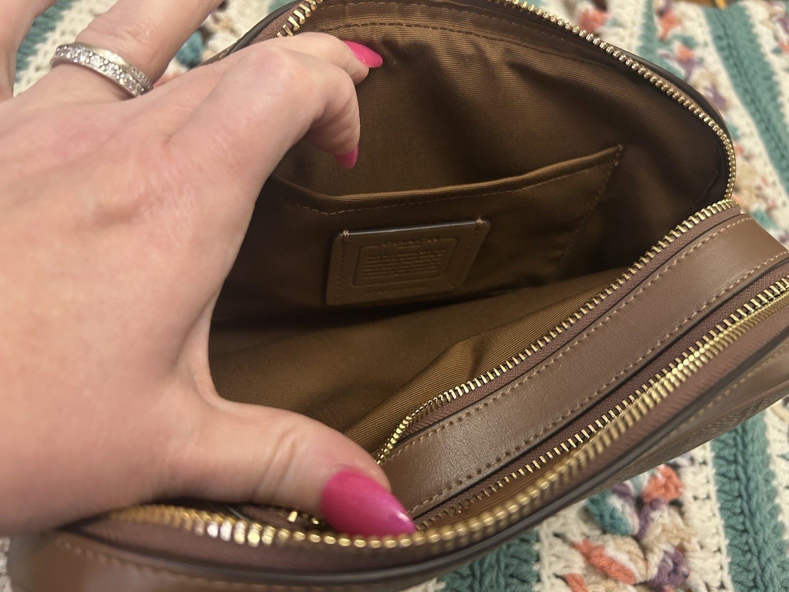 NO HANGTAG The Coach Jes Crossbody Bag in Saddle/khaki features a stylish design with a medium size, perfect for everyday use. Made with a combination of canvas and leather, this bag is durable and fashionable. The gold hardware adds a touch of luxury, while the detachable strap allows for versatile styling options. The zip closure ensures your belongings are secure, making it a practical yet trendy choice for any woman.
