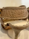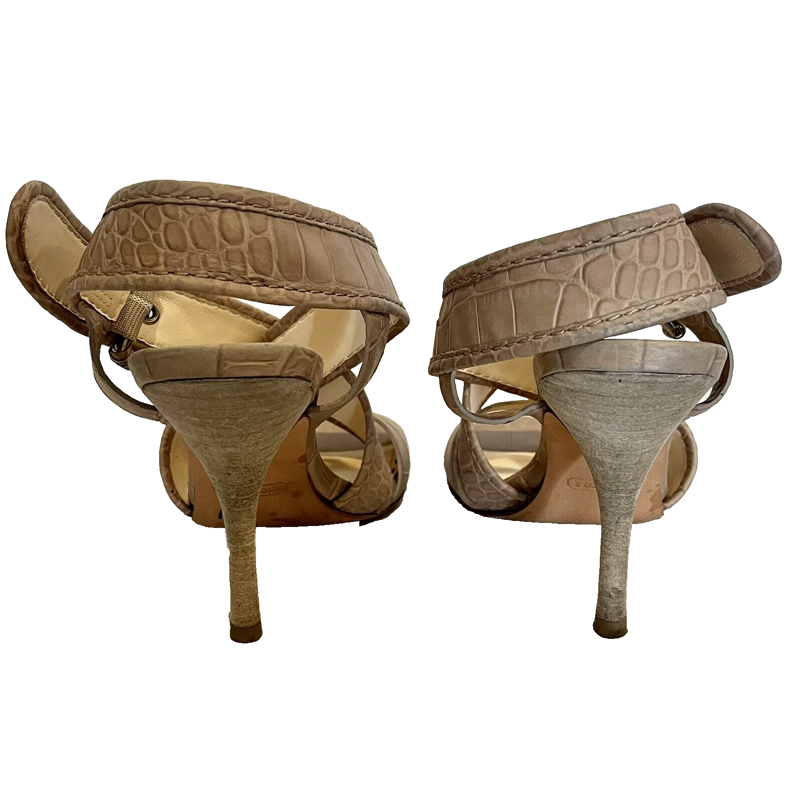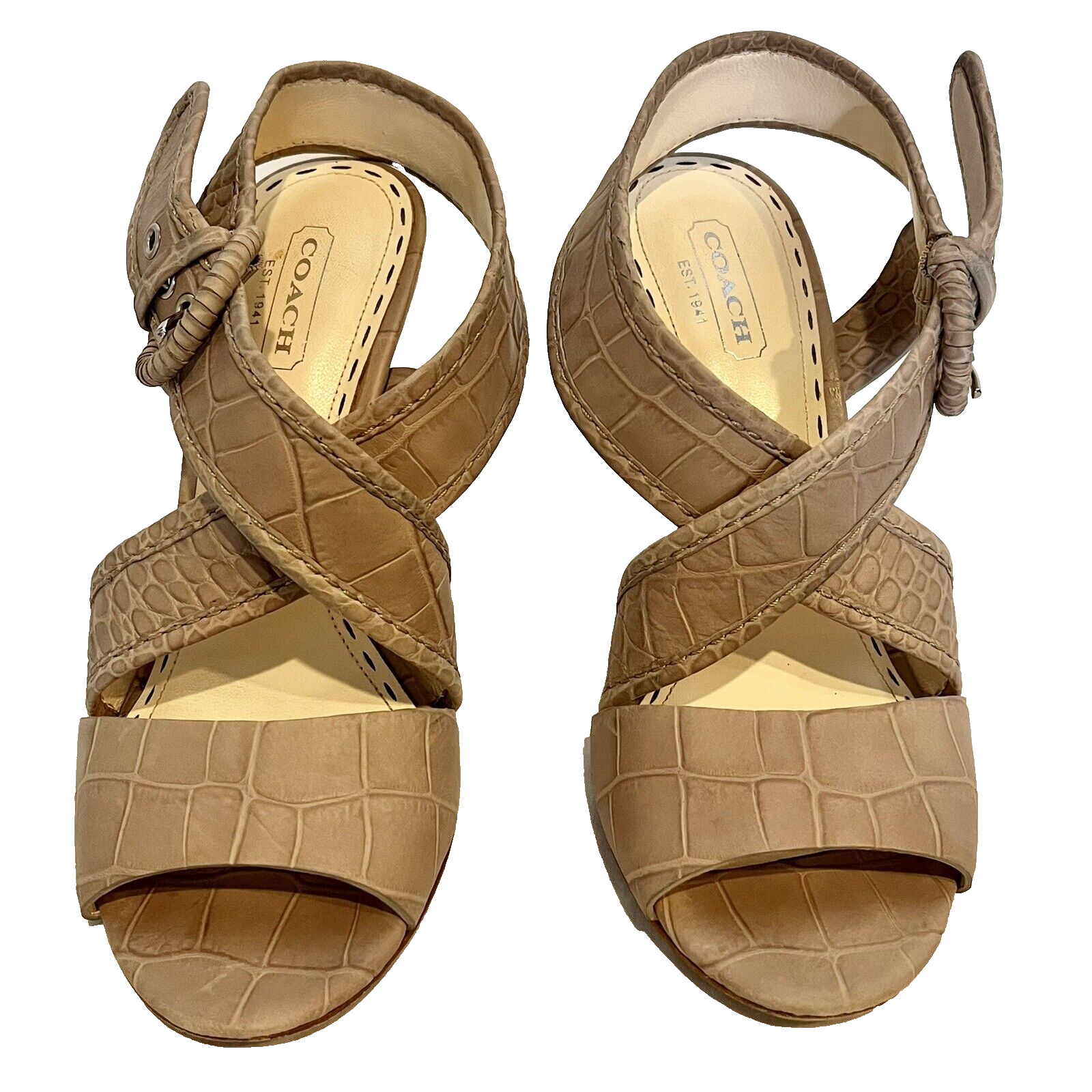 Coach Karlie Embossed Croc Sandal Size 5.5 B Beige 3.5" Stiletto Heel Leather Very Good Condition. See all photos. Be sure to check out my other items ! Please note: My goal is always 100% complete customer satisfaction. If for any reason you feel your item arrives "not as described", please contact me before leaving feedback. I am a trading assistant. I can sell items for you! |KES-SM|