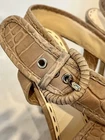 These Coach sandals are absolutely stunning! The embossed croc leather looks luxurious, and the 3.5" stiletto heel gives the perfect lift while still being comfortable. The beige color is versatile, and they're in excellent condition—just like new! The seller is super responsive and ensures satisfaction. A must-have for any fashion lover!