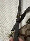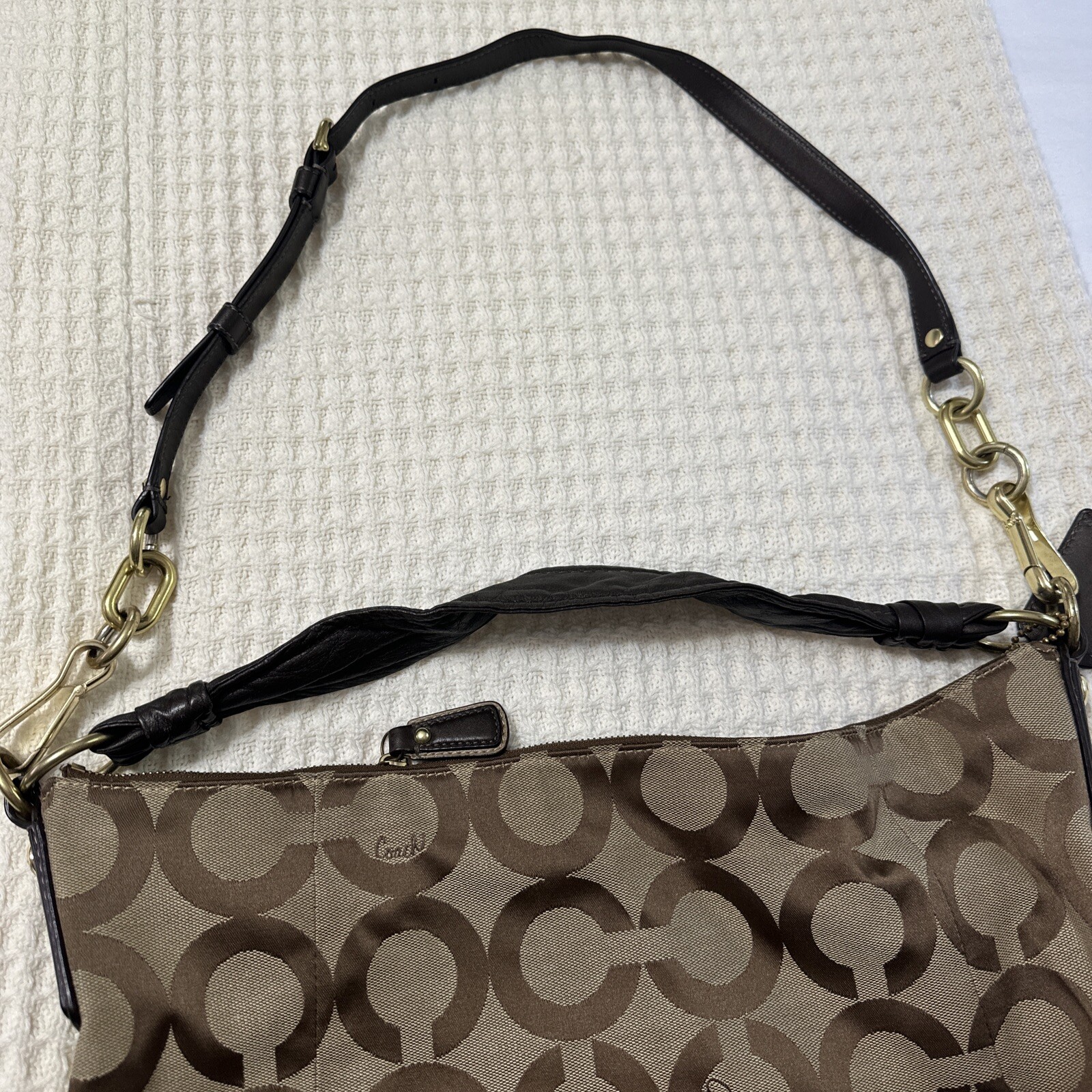 This Coach Kristin hobo handbag is the perfect addition to any casual outfit. The beautiful beige color and gold hardware give it a stylish and elegant look. The zip closure ensures that your belongings are secure and the leather lining material adds a touch of luxury. Made from high-quality leather, this tote bag is durable and perfect for everyday use. The exterior is a gorgeous brown color and the handles and straps are also made from leather. This bag is perfect for any woman who wants a stylish and functional accessory. Bag is in great condition! No smells . I turned the bag inside out to show inside .