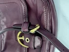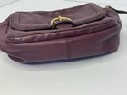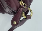 The Coach Leather Bag/Purse in Burgundy with a gold buckle accent is a stylish and versatile accessory for various occasions, including travel, weddings, parties, casual outings, and formal events. This rectangular-shaped bag features a zip closure, crossbody or shoulder strap in burgundy color, and a satin lining. With six total pockets, including two on each side, one under the buckle, and three inside, this designer bag offers both style and functionality. The classic design, high-quality leather exterior, and adjustable strap make it a timeless piece for any wardrobe. Can also be used as a camera bag. The card and price tag in the photos will be in the inside pocket.