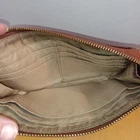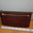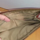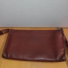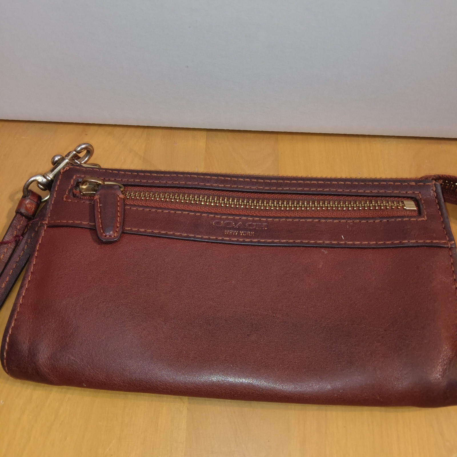 Vintage Coach leather wristlet in a rich burgundy/brown tone. Classic Coach New York stamping on front, gold-tone hardware, and a zip-top closure with interior card slots. This piece has definitely been loved and shows notable signs of age and use — please read condition details below. Features Authentic Coach Leather wristlet / small zip wallet Front zip pocket Interior card slots + open compartments Approx. 8" W × 4.5" H Gold-tone zipper and hardware Detachable wrist strap Condition (Please Read) This item is heavily pre-owned and priced accordingly. Leather shows scratches, scuffs, softening, and general wear Wrist strap has fraying and loose edges Interior lining shows significant discoloration and marks (see photos) Interior card slots intact but also show wear Zippers work properly Still a great piece for someone who loves vintage Coach leather, needs a casual everyday pouch, or enjoys restoring bags. Notes Sold as-is due to wear No returns