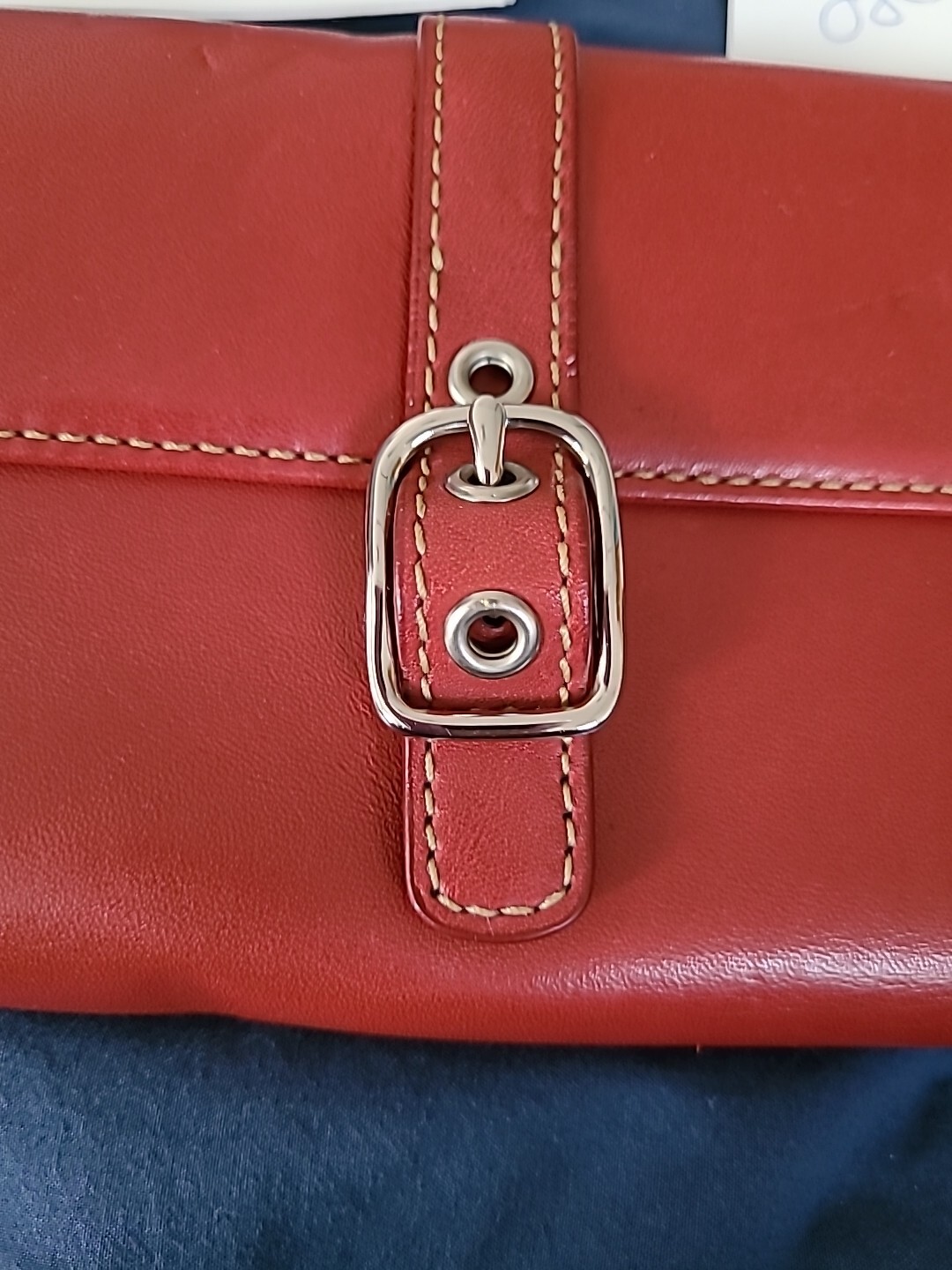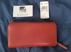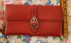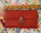 Coach 6981 Checkbook Wallet Front snap buckle Nickel hardware Approx. 7.5" x 4.5" x 1.25" Zip around style Vintage - Y2K ish Red leather - looks orange in photos...wallet is true red.... New with tags....but has some indentations, where things were laid on the leather. These are not scratches, and not cuts. I have taken photos of the indentations.... Beautiful wallet Please view photos and ask questions before buying Colors may appear different on different screens, please ask for color clarification if needed.... ALL SALES FINAL Fedex only used for shipping - no exceptions No P.O. boxes - street address needed No International shipping Shipping to the Continental USA only Thanks for looking!! ? Due to recent problems with FedEx shipping, alternative shippers may be used. ?