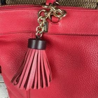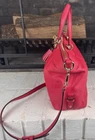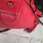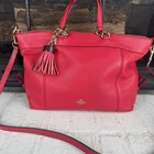 The Coach Lenox Satchel in Pebbled Leather with a Hot Pink Crossbody Strap is a stylish and versatile handbag perfect for women on the go. Made of high-quality leather with a pebbled finish, this medium-sized bag features a solid hot pink exterior color and gold hardware accents. The satchel/top handle style is both practical and fashionable, with a detachable hot pink leather strap for added convenience. The interior is lined with fabric in a matching hot pink color, making it a perfect accessory for any outfit.