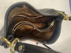 Large Hobo Bag with Zippered Center Compartment and 2 side compartments. It also has a front pocket with a turn lock closure. Only used 1X and is in "Like New Condition".