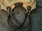 This Coach handbag is a stylish and functional accessory for any woman. It features a light brown exterior fabric with a logo pattern and a zipper closure. The bag has double handles and measures 12 inches in width, almost 9 inches in height and depth, with a total size of medium. The interior is lined with dark brown shiny fabric and includes pockets for added convenience. The bag is made in China and has silver metal hardware. It is a part of the Coach product line and the model number is D1326-F23921. This tote style handbag is perfect for any occasion and is sure to complement any outfit. This Coach bag is pre-owned and has a few spots, inside and out. However, this bag is in very good condition and we know that you will be happy to be its new owner.