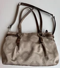 Coach Madison Dotted Op Art Sophia Satchel Handbag Tote Beige Tan