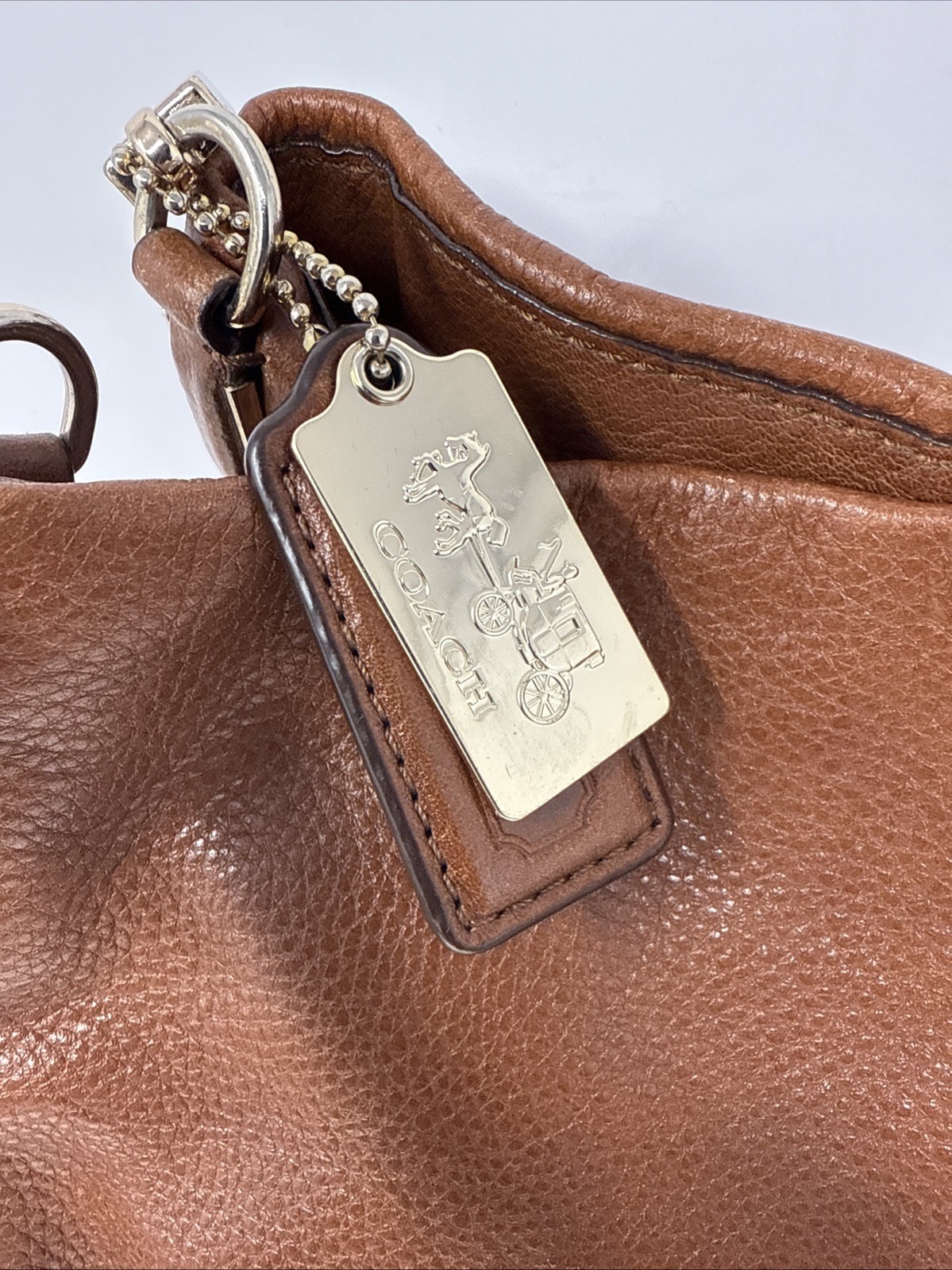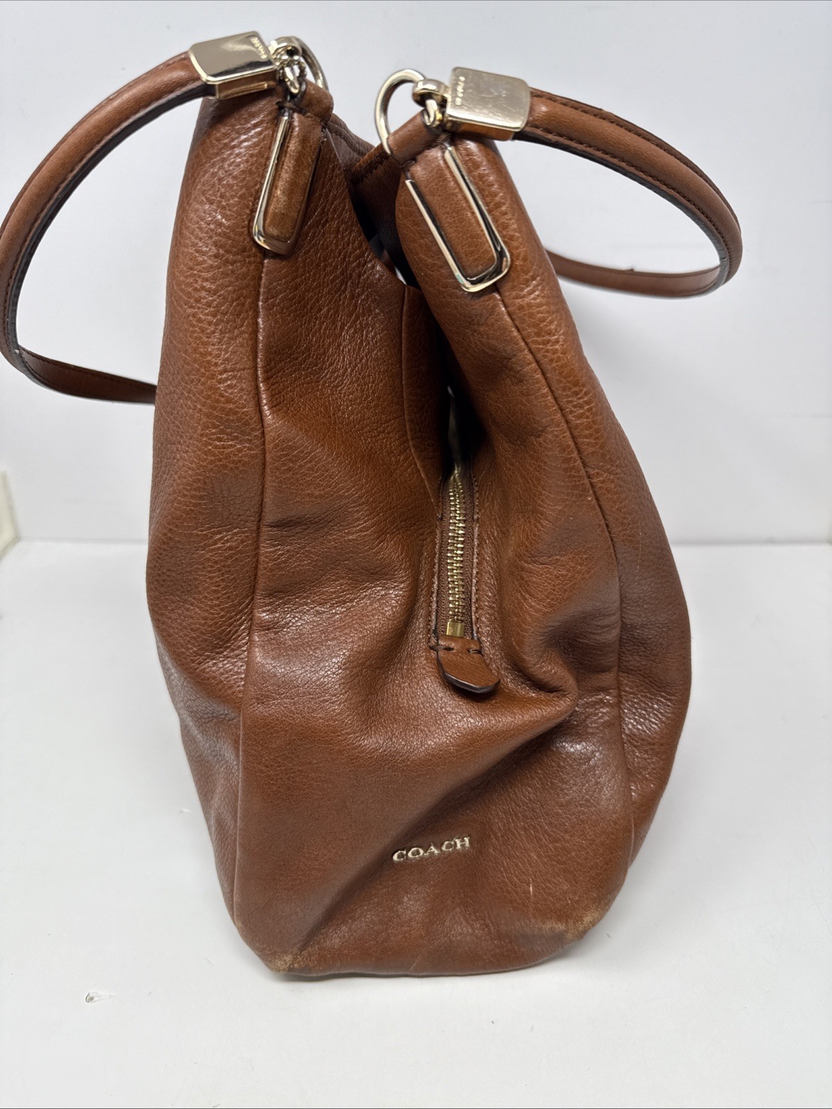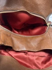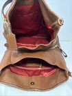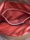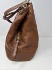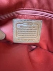 The Coach Madison Phoebe Brown Pebble Leather Shoulder Purse is a stylish and versatile accessory suitable for various occasions such as travel, casual outings, workwear, and business meetings. Made from high-quality leather, this medium-sized square-shaped bag features a fuchsia handle/strap color, gold hardware accents, and inner dividers for organization. With a zip and magnetic closure, this purse offers both security and convenience. The bohemian-themed design with the signature Coach logo adds a touch of sophistication to any outfit, making it a must-have for those who appreciate quality craftsmanship and timeless style. There is some wear in bag and a few marks in leather. Also a spot on handle where trim has been damaged. Please refer to photos for best idea of condition bag is roughly 12” long 11” tall and 4” wide at base.