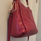 Stylish Coach Madison Sadie Scarlet Red Satchel bag with crossbody strap. This beautiful bag has some yellow gold accents. Comes with both her handtags; one is red and the other is a gold metal. Perfect for everyday use. Approximate dimensions 11" x 9" x 3.5" Handle drop 4" Strap drop is adjustable She is in excellent pre-owned condition! No callouts!