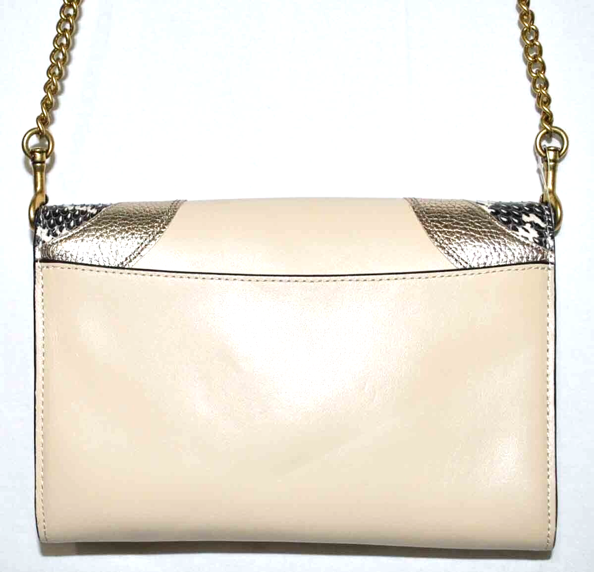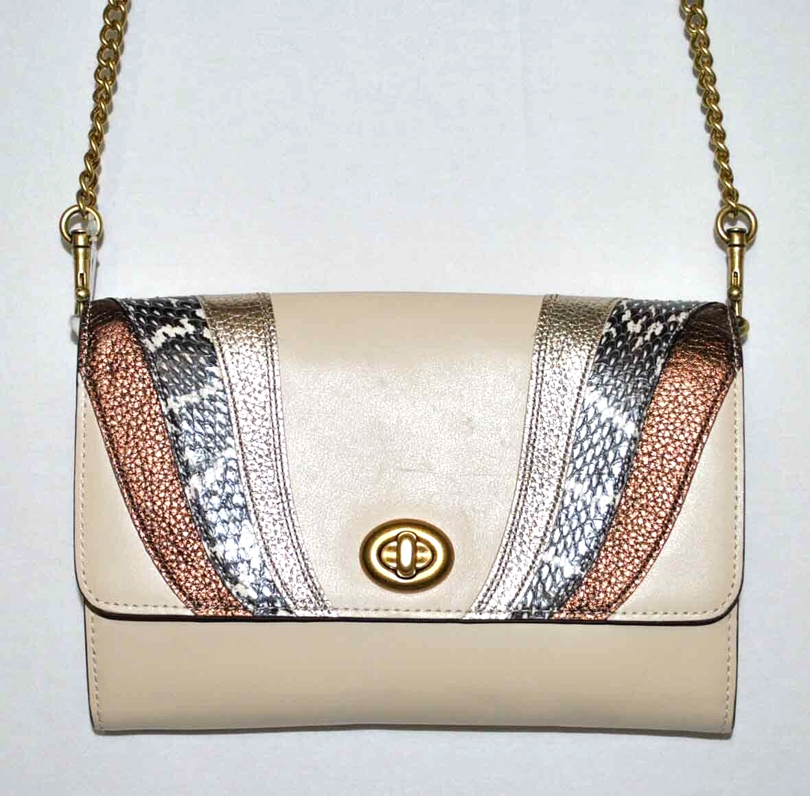 Coach Marlow Turnlock Chain Crossbody With Wave Patchwork, Ivory Muti $250 100% Guaranteed Authentic Description: Your dream bag. The COACH Mixed Leather Dreamer with fresh, whipstitch detailing is the ultimate classic you need in your handbag lineup. Large sized bag; 11"W x 7 1/2"H x 4 1/2"D (width is measured across the bottom of handbag) Silhouette is based off 5'9" model 6-3/4"L handles; 22"L adjustable removable strap Zip closure Gold-tone exterior hardware & 2 side snap pockets 1 interior zip pocket & 2 multifunction pockets Leather Imported Web ID: 8530702 Condition: Good Conditions, but there are minor marks on leather at the front, see photos. ISSUES: We take pride in honest representation of all our listed items and the integrity to resolve and issue if something was overlooked. Also, if you have any issues please contact us prior to opening a case with eBay. Most issues can be resolved upon the first contact with us. __________________________________________________________________________________________________ Note: Some of the colors are slightly darker or lighter than the actual color shown in the picture. __________________________________________________________________________________________________ All my items come from a clean, smoke free environment . Se Habla Español __________________________________________________________________________________________________ Note: These items are brand new or customer returns and comes from liquidation stores. The items are shelf pull, overstocks, and customer returns. I will state if they are new with tags or without tags. We inspect each and every item before listing and will always note flaws of any kind. __________________________________________________________________________________________________ Payment Payment is due immediately after auction ends. If payment is not made on time, the item will be re-listed. Shipping Shipping discount is offered on combined purchases only. Orders will be shipped within 1-2 business days after the item has been paid for. We ship USPS Priority International, and First Class International. Please allow 15 business days for the First Class International shipping. If you need it sooner choose Priority International. Please keep in mind that the order will take longer to get there if ordering from out side the U.S. No returns for International purchases, all sales are final. Terms Of Sale Please read auction details carefully, and ask questions before buying and bidding. If you are not completely satisfied with your purchase, please contact me within 3 days after receipt of item. I will refund the original purchase price (MINUS ALL SHIPPING CHARGES) only if the item is promptly returned undamaged and in original condition. Contact Us ISSUES: We take pride in honest representation of all our listed items and the integrity to resolve and issue if something was overlooked. Also, if you have any issues please contact us prior to opening a case with eBay. Most issues can be resolved upon the first contact with us. FEEDBACK: Please don't forget to leave positive feedback! I strive for 110% positive feedback. I will return the favor once I receive it. Please contact me before leaving any neutral or negative feedback, I will do my best to solve any problems with any transactions to ensure 100% satisfaction. (M2675-24)