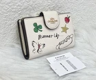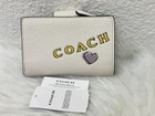 Coach Medium Corner Zip Wallet With Sketch Print Color: Gold/Chalk Multi From smoke and pet free environment. 100% Authentic Guaranteed Product Details: STYLE NUMBER: CAO94 MEASUREMENTS Length: 5.0" Height: 3.5" Width: 0.5" MATERIALS Refined pebble leather FEATURES Seven credit card slots Snap closure Bill compartment ADDITIONAL DETAILS ID window Shipping is within 24 Hours with USPS Price is firm