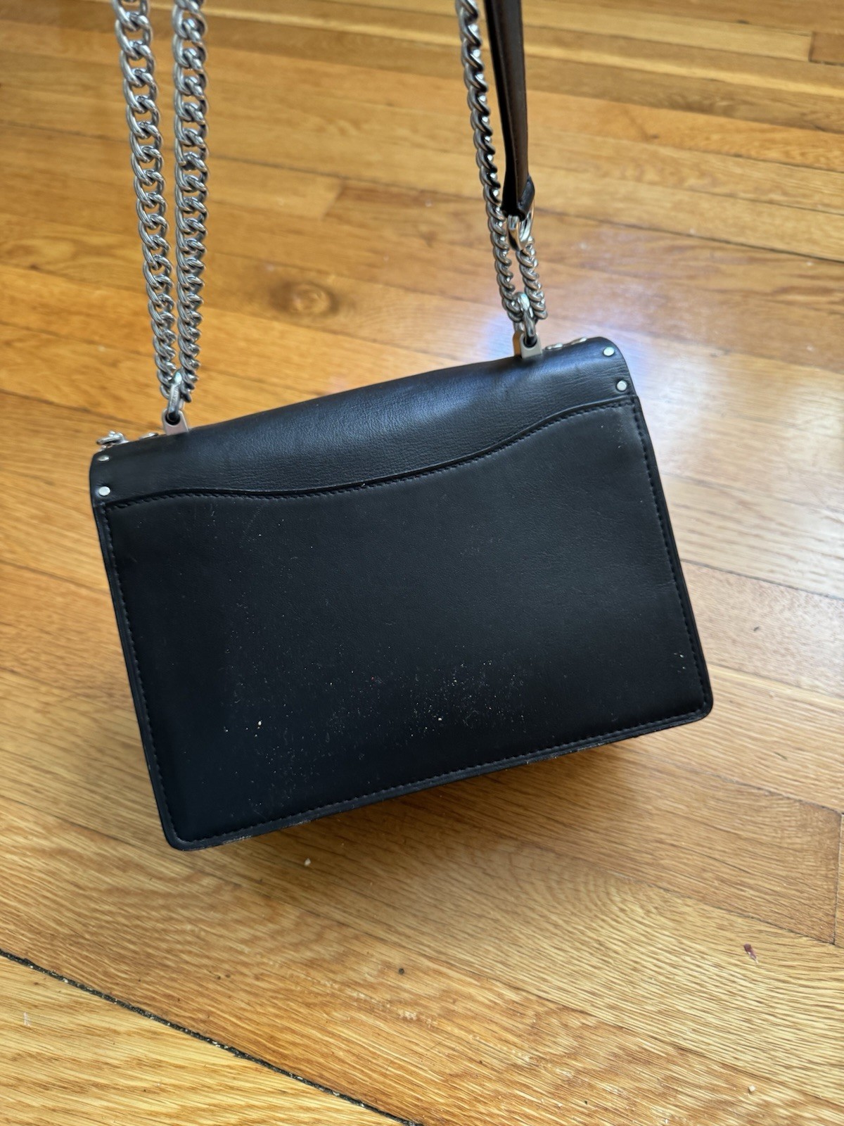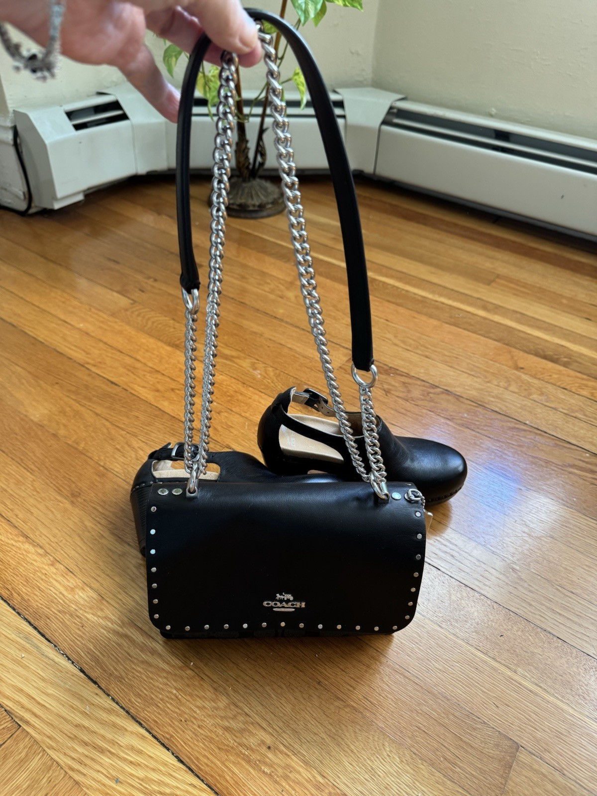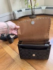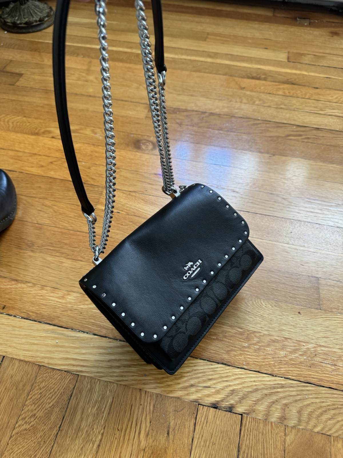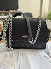The Coach Medium Leather Crossbody Shoulder Bag in black with silver hardware is a stylish and practical accessory for women. The rectangular shape and medium size make it perfect for carrying everyday essentials. The crossbody strap handle style offers convenience and versatility. The exterior and lining materials are leather and fabric, with silver accents adding a touch of sophistication. With a zip and snap closure, this bag provides both security and easy access to your belongings. Perfect for a chic and on-the-go look, this Coach bag is a must-have for any fashion-forward individual.
