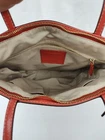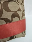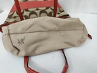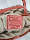 Coach Handbag Tan C Fabric With Orange and Leather Handles Medium Purse Gently pre-owned with a few stains - please see all pictures Outer Shell stains are minimal Measurements are approximate 10 in. X 13 in. X 3 in. Smoke free and pet free home Thank you! IL-BG49