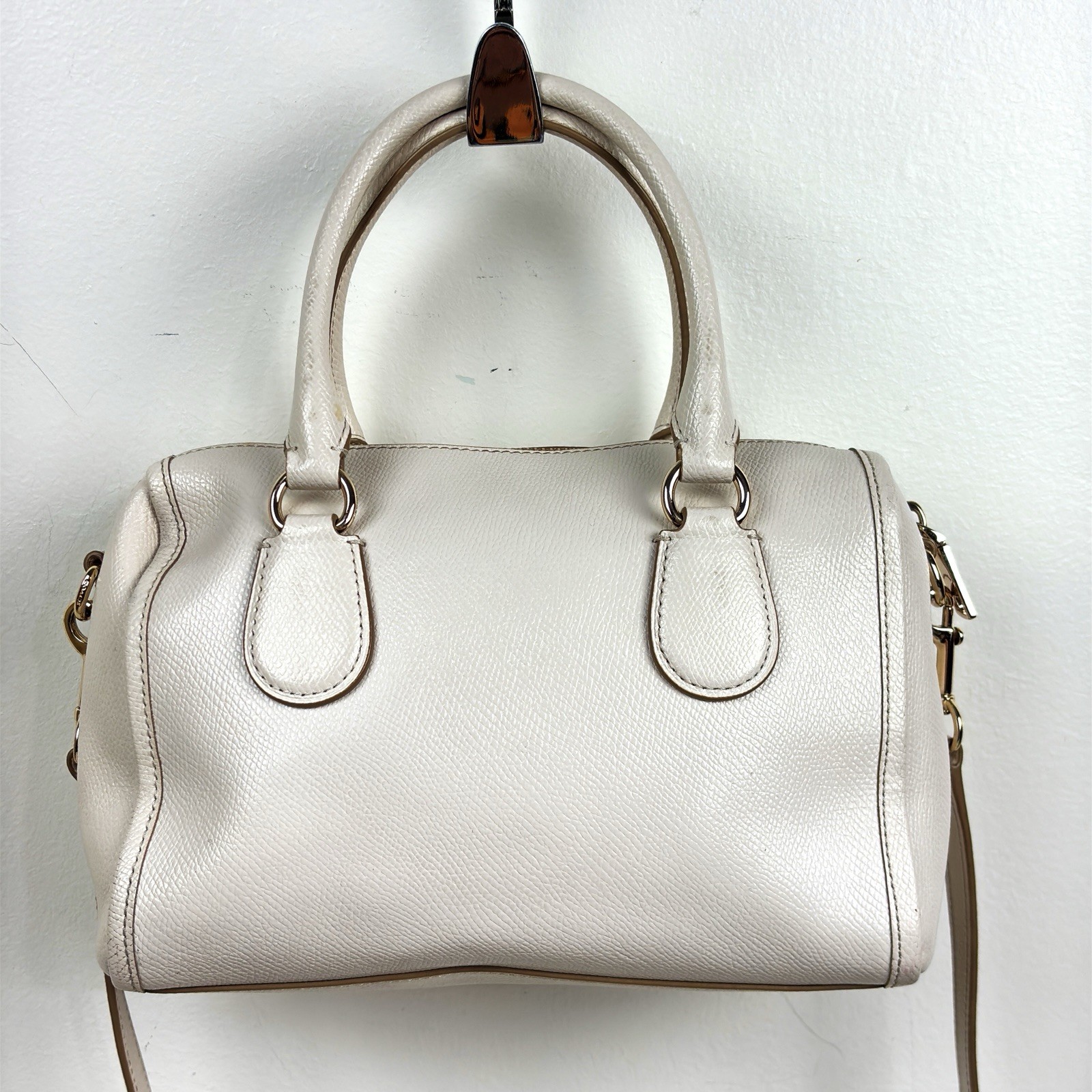 Coach Mini Bennett Satchel Crossbody Bag Crossgrain Leather F33329 Beige EUC very good pre-owned see photos there is one small area of stain measures about 9x7x4 with handle drop of 4 inches, and an adjustable crossbody strap inside has a zip and open pocket See photos Check out my store, 1000’s of vintage and collectibles items. Guarantee, Return, Shipping, and Tax Policies: We guarantee our products. We allow return or exchange. Unless STATED Otherwise Email us before sending it back to resolve any issues. Taxes for those US States that require them will be collected by eBay. International Buyers - please note: Import duties, taxes and charges are not included in the item price or shipping charges. Please check with your country's customs office before bidding/buying. Thank You!