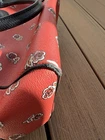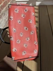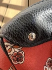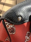 This Coach Mini Bennett Satchel in Sienna Rose is a stylish and practical addition to any wardrobe. The bag is made of a combination of canvas and leather, with a floral pattern and multicolor exterior. It features a zip closure and silver hardware, with a black leather handle/strap and a black lining made of canvas. The satchel/top handle bag has a width of 9 inches, a height of 7 inches, and a depth of 5 inches. It comes with a pouch accessory and is part of the Coach Outlet product line. The bag is perfect for women who want a compact and versatile bag for everyday use or special occasions. Cool bag! Wear present on all corner linings. Presentation still great.