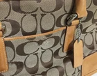 This Coach tote is a stylish and practical choice! The leather and canvas combo gives it a classic yet durable look. Despite minor wear, it’s in great condition—perfect for everyday use. The size is compact but fits essentials easily. Love the timeless design and sturdy handles. A fantastic deal for a pre-loved Coach bag!
