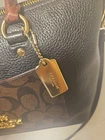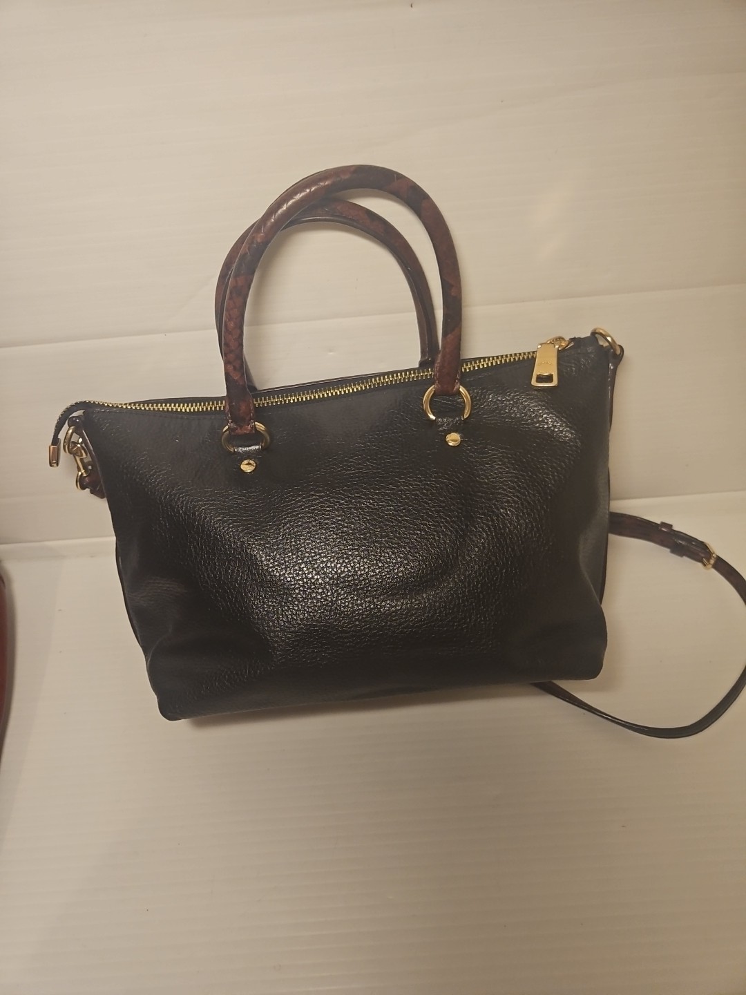The Coach Mini Emma Python Accent Satchel Leather F34281 Shoulder Bag is a stylish and versatile accessory perfect for various occasions. Made with high-quality leather and featuring python accent straps in red and black, this small-sized bag is both fashionable and durable. With a zip closure, gold hardware accents, and a detachable strap, this bag offers both practicality and convenience. The bag also includes outside and inside pockets, making it ideal for travel, parties, casual outings, workwear, and business meetings. Whether you're looking for a chic crossbody style or a traditional shoulder bag, this Coach Emma model is a must-have for your wardrobe. Great condition