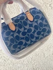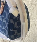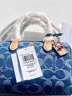 Coach Mini Rowan Crossbody Bag In Signature Denim Brand new with tags come with original packaging STYLE NUMBER CY742 MEASUREMENTS Length: 7.0" Height: 4.75" Width: 4.0" MATERIALS Signature denim and vachetta leather Fabric lining HANDLE Handles with 2.75" drop STRAP Detachable strap with 23.5" drop for shoulder or crossbody wear FEATURES Two credit card slots Zip-top closure Price is firm