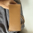 Coach is making a comeback and this bag is the perfect way to ride the trend. This little tote is too cute. Perfect to throw your phone, a wallet, lip gloss and keys. It’s in stunning condition but please look closely at the photos because she’s not perfect - but so close. I love this little tote. She goes with any outfit. I will also include the little ribbon seen in the photos. The Coach Mini Tote is a rectangular shaped bag made of leather with a camel exterior color and brown lining. It features a magnetic closure, double camel leather handles with a drop of about 5 inches, and a mini size perfect for casual occasions. This tote is a part of the Coach product line and is designed for women who appreciate quality and style in their accessories.