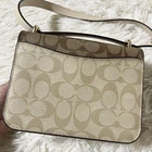 COACH Morgan Square Crossbody Blocked Signature Canvas, model number F2380-CL429, color Light Khaki Multi. The size is 5.71 inches in height, 7.28 inches in width, and 2.36 inches in depth. It can store up to an iPhone 15/15 Pro (6.1 inches). The adjustable strap has a 21.46-inch drop, suitable for shoulder and crossbody wear. There are some scratches on the metal parts and warping on the outer pocket, but the overall condition is clean. I promise fast shipping via FedEx or DHL as soon as possible! Import duties, taxes and charges are not included in the item price or shipping charges. These charges are the buyer’s responsibility. These charges are normally collected by the delivering freight (shipping) company or when you pick the item up - do not confuse them for additional shipping charges.