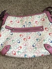 Multicolor Design Coach Handbag. Condition is Pre-owned. Thus bag is pre owned but looks great I see a slight discoloration above the inter picket see the photos, if more photos are needed please ask Thank you Shipped with USPS Priority Mail.