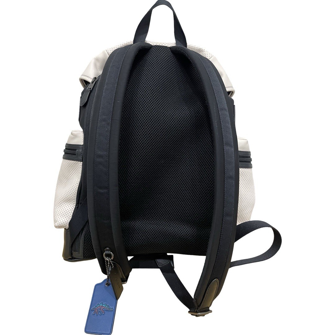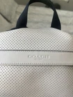 The Coach Perforated Terrain Trek Leather Backpack in Off-White is a versatile and stylish accessory suitable for travel, casual outings, and business purposes. Made with high-quality leather, this large-sized backpack features a solid ivory color with quality hardware for a timeless designer look. It includes inner pockets, lightweight design, inner dividers, laptop sleeve protection, adjustable straps, and a full length exterior laptop zipper for added convenience and functionality. Also includes the original Coach tag and an additional Coach leather dinosaur tag for free. Perfect for both men and women, this unisex backpack adds a touch of luxury to any outfit with its premium materials and sleek design.