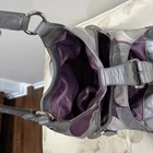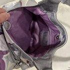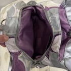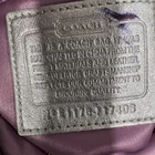 The Coach Op Art Scarf Print Large Shoulder bag is a stylish and luxurious accessory for women. Made from satin with a beautiful purple exterior color and silver hardware, this medium-sized shoulder bag features a unique logo pattern that adds a touch of artistic flair. The snap closure and silver handle/strap add a touch of sophistication, making it a perfect statement piece for any outfit. The luxurious satin lining in purple complements the exterior color, creating a cohesive and elegant look. Perfect for any woman who appreciates art and fashion.