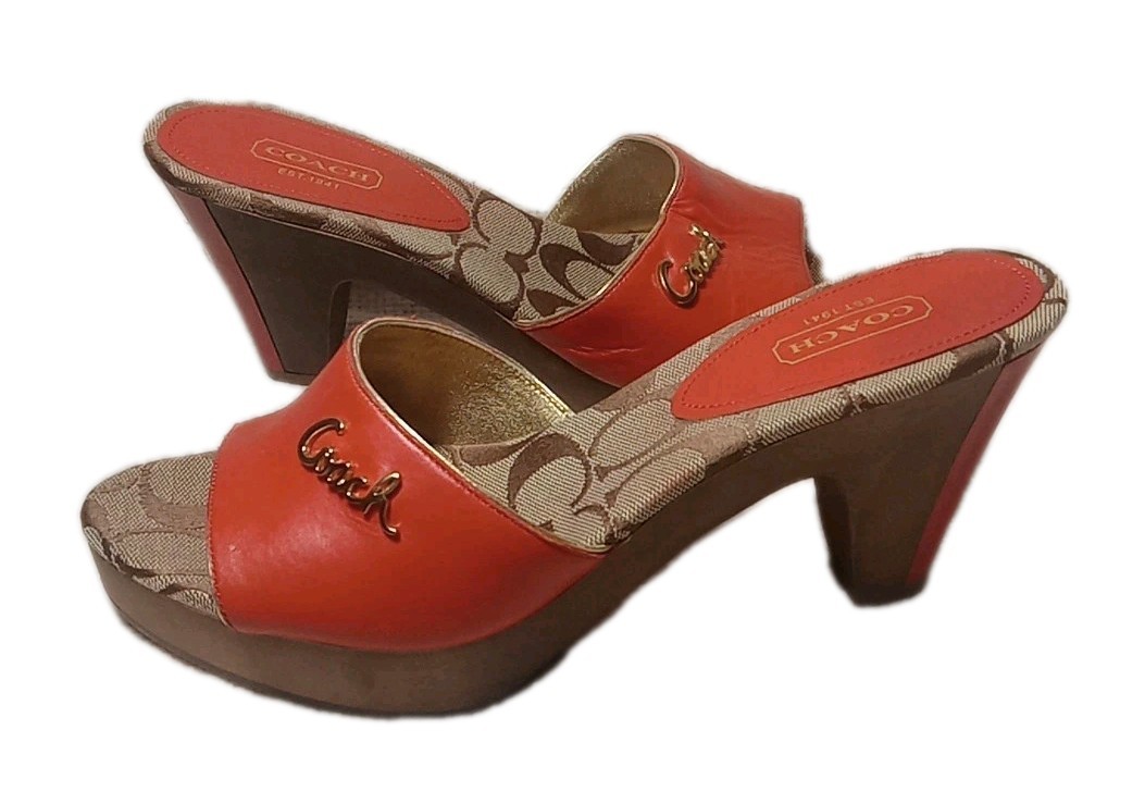 These sandals are absolutely stunning! The vibrant orange leather and signature logo add a luxurious pop to any outfit. The peep-toe design and mid-height heel strike the perfect balance between comfort and elegance—ideal for brunch, date nights, or even casual outings. The lightweight feel and cushioned insole make them surprisingly easy to wear all day. The quality is unmistakably Coach, with durable leather and a sleek silhouette. A must-have for anyone who loves statement footwear that doesn’t sacrifice comfort!