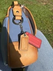 Introducing a stylish and functional Coach handbag perfect for any occasion! This medium-sized crossbody bag boasts a beautiful colorblock design featuring shades of red and blue. The bag has a smooth finish and is made of high-quality leather with brass hardware and a vachetta leather crossbody strap. The bag has multiple inner and outer pockets, providing ample storage space for all your essentials. It also comes with a bag charm for added style. This bag is perfect for travel, weddings, parties, or casual outings and workwear! 💙❤️