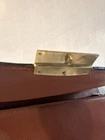 No shoulder strap see photos This vintage Coach Pebbled Brown Leather Diplomat Briefcase is a stunning addition to any collection. Crafted from high-quality leather, this bag is both durable and stylish. The flap over design with an accordion comb lock adds a unique touch that is sure to impress. With its classic brown color and 1990s design, this bag is perfect for any fashion-conscious individual. Made in the United States, this Coach bag is a true representation of quality and style. Whether you're using it to carry your everyday essentials or as a statement piece, this bag is sure to turn heads.