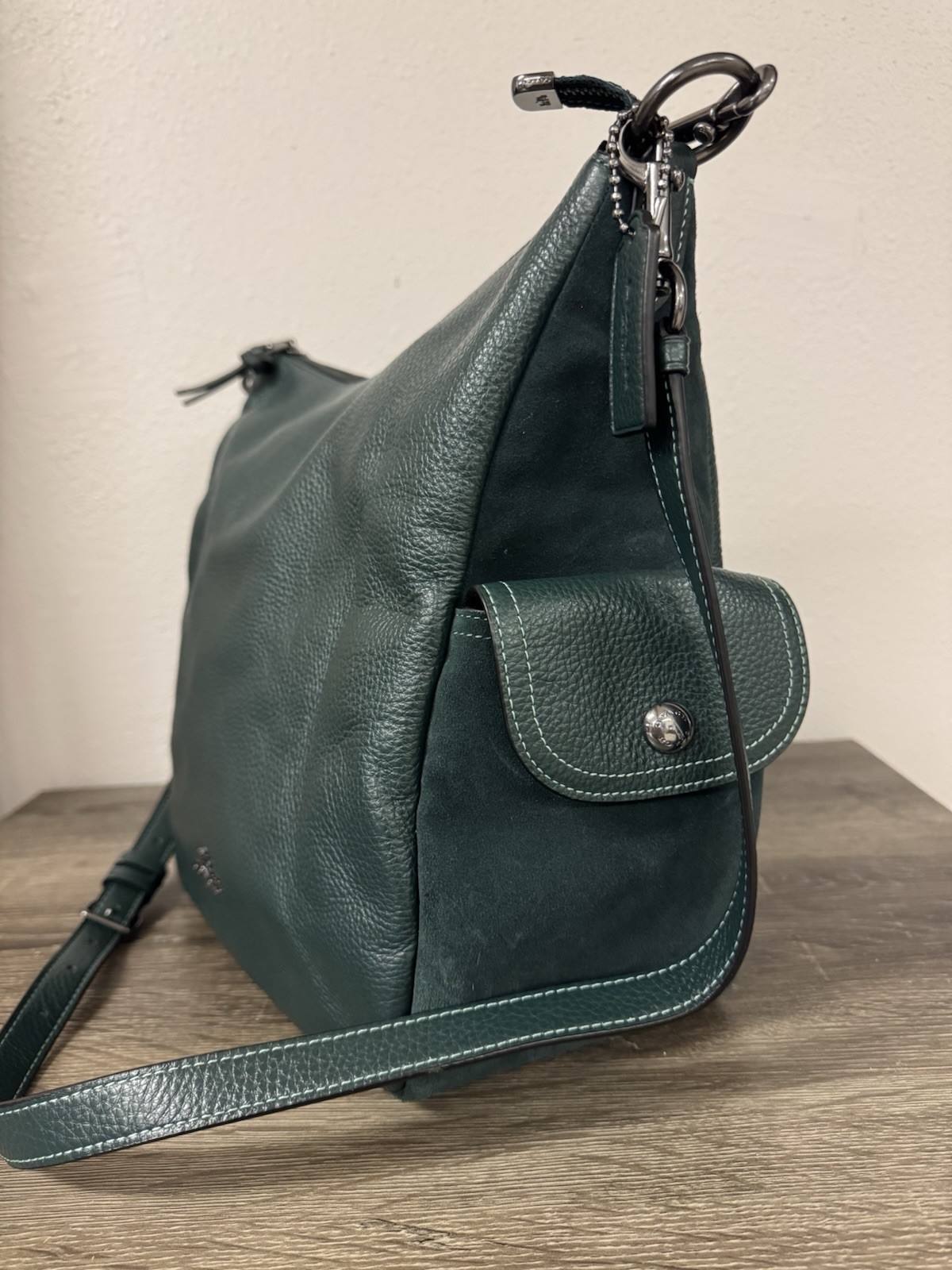 Coach dark teal/green leather and suede Pennie hobo bag. Has both the long strap and the short strap. No visible flaws as seen in pictures.