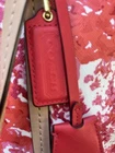 Eye-catching Coach shoulder bag with a bold red and pink pattern. Ideal for making a statement