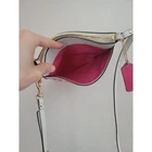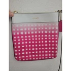 Coach Saffiano Ombre Gingham Leather Swingpack Crossbody Purse Pink White Gently pre-owned condition with no flaws Brand: Coach Approximately measurements: 8 x 8.5 inches