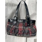 Coach Poppy Tartan Plaid Tote Bag (Style F15467) Stunning Coach Poppy Tartan Plaid Tote Bag (F15467)—a rare and eye-catching piece that effortlessly blends sophistication with a fun, bold design. Features: • Classic tartan plaid pattern with a mix of black, red, white, and yellow tones • Black patent leather trim & handles for a sleek contrast • Signature Coach logo hangtag for added charm • Silver-tone hardware with buckle details on straps • Spacious zip-top closure to keep your essentials secure • Interior lined with multiple pockets for easy organization 🔹 Serial Number: H1082-F15228 🔹 Condition: New add 🔹 Dimensions: Approx. 14” L x 9” H x 4.5” W with a 9” strap drop A perfect blend of fashion and function, this limited-edition Coach tote is ideal for everyday use, work, or travel. Don’t miss out on adding this collector’s piece to your wardrobe!