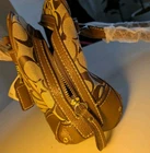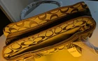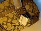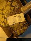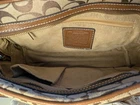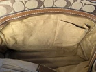 Coach Purse Handbags Satchel Signature Canvas with some minor wear and tear on corners - see photos for details. There is a pull missing on one of the zippers.