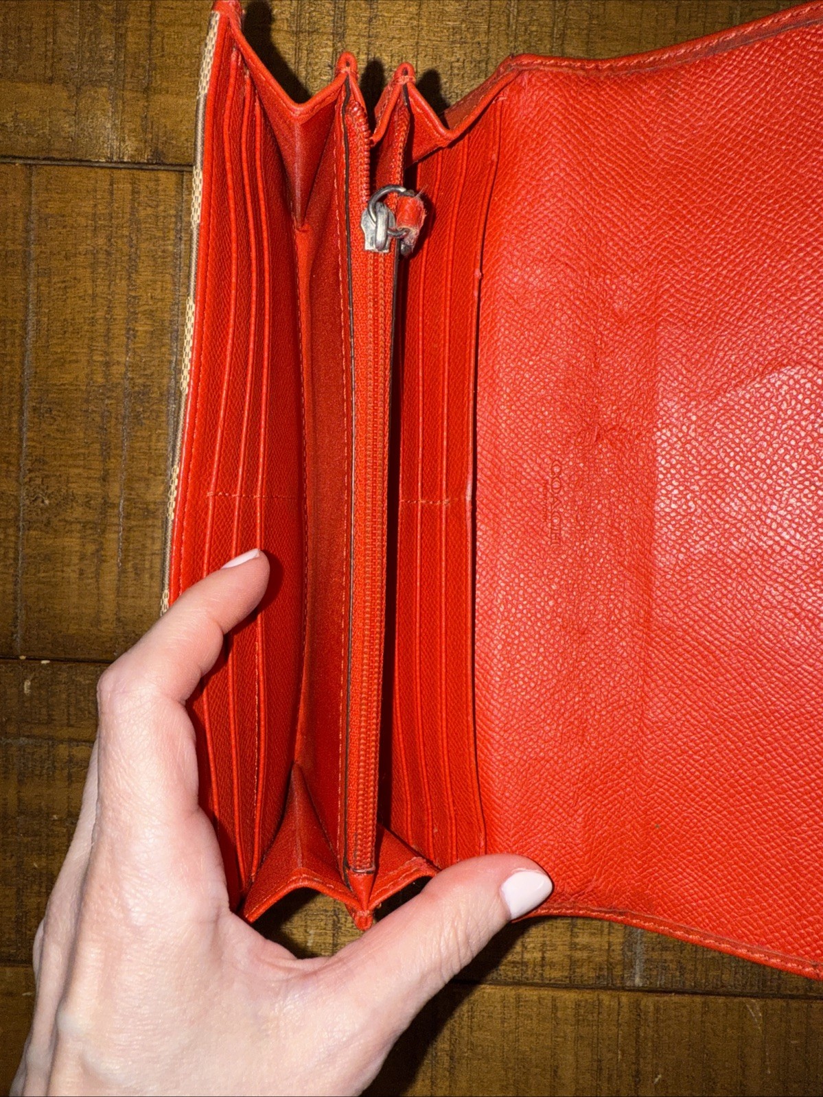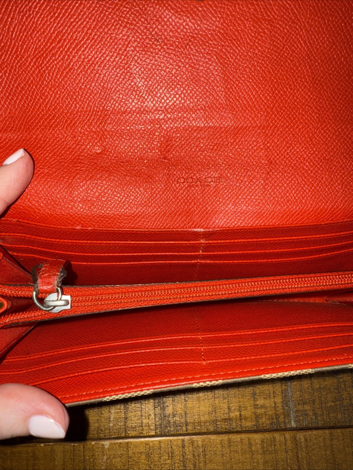 Coach Red & Brown Continental Wallet Condition: Fair (price reflects). Please review all photos carefully as they are considered part of the item's description and show approximate measurements. ๐๏ธ Wearhaus Market Store Policy Thank you for shopping at Wearhaus Market โ a curated collection of new and preloved fashion with style and soul. Please review our shop policy before making a purchase: ๐ฆ Shipping & Responsibility -All items are carefully packaged and shipped with tracking. -Packages are photographed prior to shipment to document condition and packaging. -At this time, we ship only within the U.S. ๐ Returns & Exchanges -All sales are final. -As all items are accurately represented and often one-of-a-kind, we do not accept returns or exchanges. -Each listing includes clear measurements, multiple photos, and detailed descriptions to help you shop with confidence. -Please feel free to message us with any questions before purchasing โ weโre happy to help! Thank you for shopping conscious fashion ๐ค