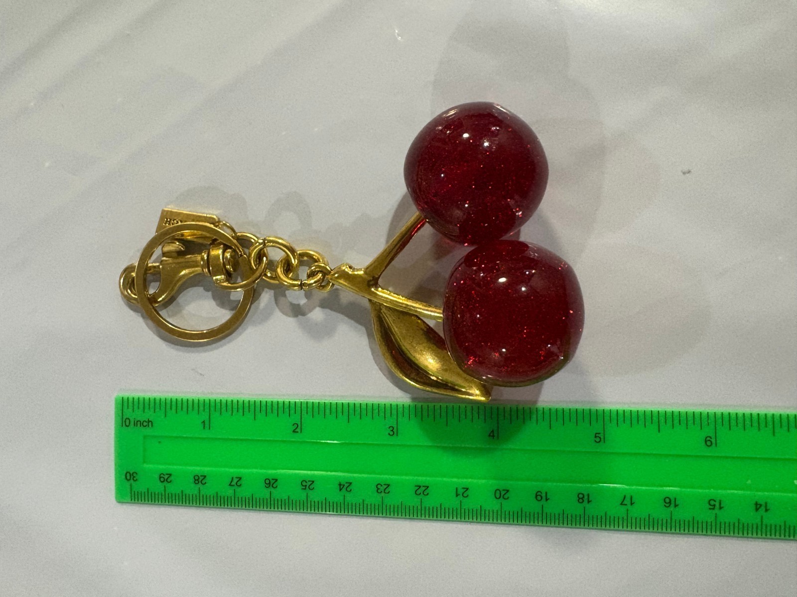Coach Red Cherry Apple Bag Charm Keychain Resin Metal Brass Purse Decoration Coach Fashion: Coach Cherry Bag Charm KeyChain Featuring a red apple design. Made of glitter resin and metal brass. Belongs to the Charmed character family. Unique accessory for adding a touch of charm to your bag or keys. Designed with a cherry theme and is suitable for use as a decorative accessory.