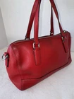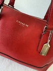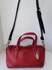 Coach Red Saffiano Leather Mini Satchel F49392 Women’s Bag Purse -Note there is no coach creed, as typically smaller vintage coach bags don’t typically have a creed. -Good shape with some wear to exterior as shown in photos. Interior can use some cleaning. Original crossbody strap is missing, but it includes another coach black crossbody adjustable strap -Top zip closure -Coach hangtag -Silver accents -Top zip closure -YKK zipper -Red exterior color tone -Beige fabric lining -Internal slip pocket -Approximate measurements: 10" width x 6" length x 4 depth