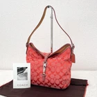 Coach Red Signature Soft Clip Hobo Shoulder Bag Leather Canvas Y2K Style /Used+ Key Features **Product Description:** - Brand: COACH - Product Type: Soft Clip Hobo Signature Handbag - Model: Y2K One Shoulder Bag - Style: Hobo - Department: Women's - Material: Leather and Canvas - Color: Red - Size: Approximately 21cm (Height) x 26cm (Width) x 6cm (Depth) - Handle Drop: Approximately 20cm - Closure: Clip - Features: Two zippered pockets and one open pocket inside - Condition: Gently used, no major stains or scratches, ready for use - Accessories: COACH charm and storage bag included Item Specifics: C:Exterior Material: Leather, Canvas C:Style: Hobo C:Exterior Color: Red C:Department: Women's C:Product Line: Signature C:Handle/Strap Material: Leather C:Lining Color: Not specified C:Lining Material: Not specified Specifications Brand Coach Country Japan Department Woman Theme Bag Product Description Item Title Coach Red Signature Soft Clip Hobo Bag Payment Supports managed payments Please pay within 5 days after auction is finished. About Us We are located in Japan. It's our pleasure to make you happy by proposing our recommend item. If you have any questions or request about items, please feel free to ask us. International Buyers - Please Note: -Import duties, taxes, and charges are not included in the item price or shipping charges. These charges are the buyer's responsibility. -Please check with your country's customs office to determine what these additional costs will be prior to bidding/buying. -These charges are normally collected by the delivering freight (shipping) company or when you pick the item up - do not confuse them for additional shipping charges. -We do not mark merchandise values below value or mark items as - gifts - The US and International government regulations prohibit such behavior. Thank you for your understanding.