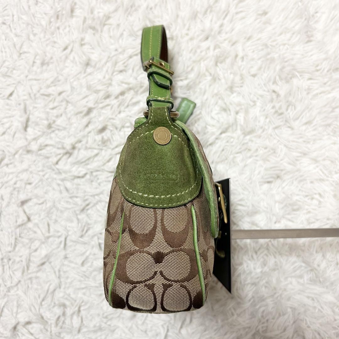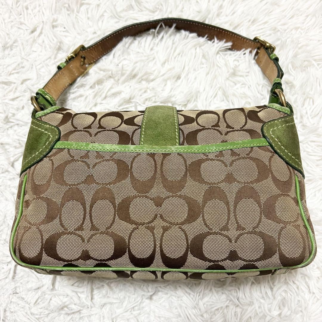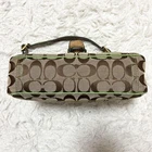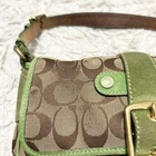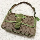 Love this vintage Coach SOHO bag! The beige and green combo is so unique, and the canvas-suede mix gives it a classic yet stylish look. The size is perfect for everyday use—fits all my essentials without being bulky. Yes, it has some wear, but that adds character to its retro charm. The included charm is a cute bonus! Shipping from Japan was smooth and fast. Great seller with clear communication. Super happy with this find—definitely a timeless piece worth adding to any collection!