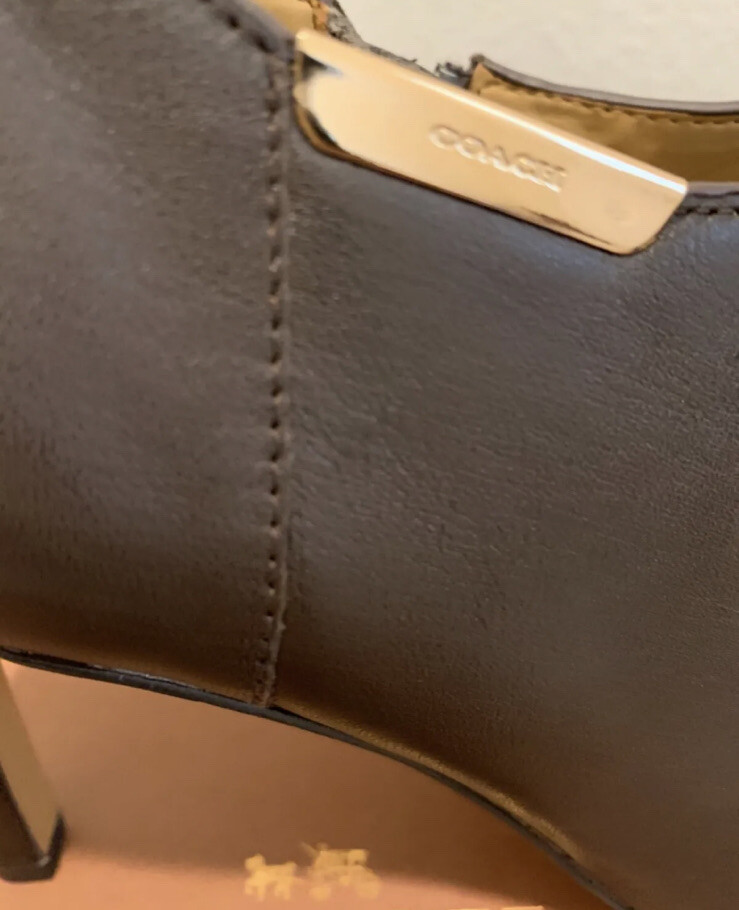 Brand New With Box Coach Seneca Women’s Bootie 8.5 Leather Chestnut Brown Heel. MSRP $176.00!!! Steal of a deal!! Women’s size 8.5 Brand New Never been worn chestnut brown bootie heels! You’ll look fantastic no matter what else you have on rocking these eye catching wonders of shoe world! 100% Glazed Calf Leather Chestnut Brown with Gold Tone COACH Logo Metal Plaque on Side Slim Heel Sz 8.5 M Width: Standard Heel Height: High 3.5" If you’d like more photos or have any inquires feel free to contact me at any time!