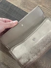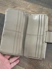Small area with repair See close up Large and nice lightweight Coach wallet outer pockets -12 credit card slots- inner slots